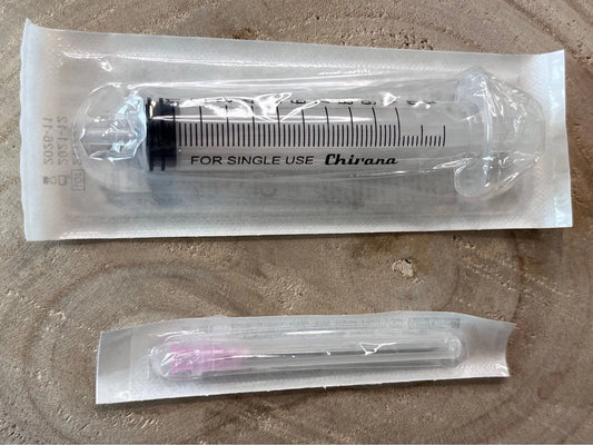 Juego de jeringa y aguja estériles: herramienta esencial para el cultivo e investigación de hongos.