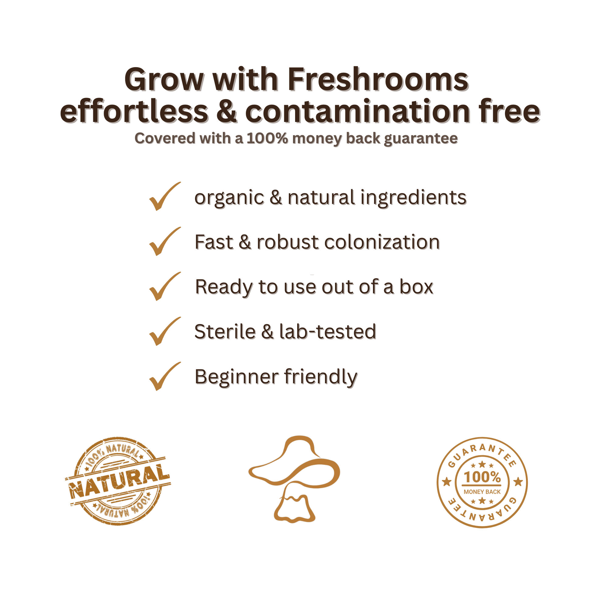 Freshrooms grow bags are made with premium materials and consistent processes, so you can focus on the best part - harvesting beautiful mushrooms in the comfort of your home.